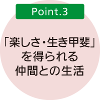 共同生活で自ら感じ得る「利用者仲間と共に織りなす楽しい生活」です